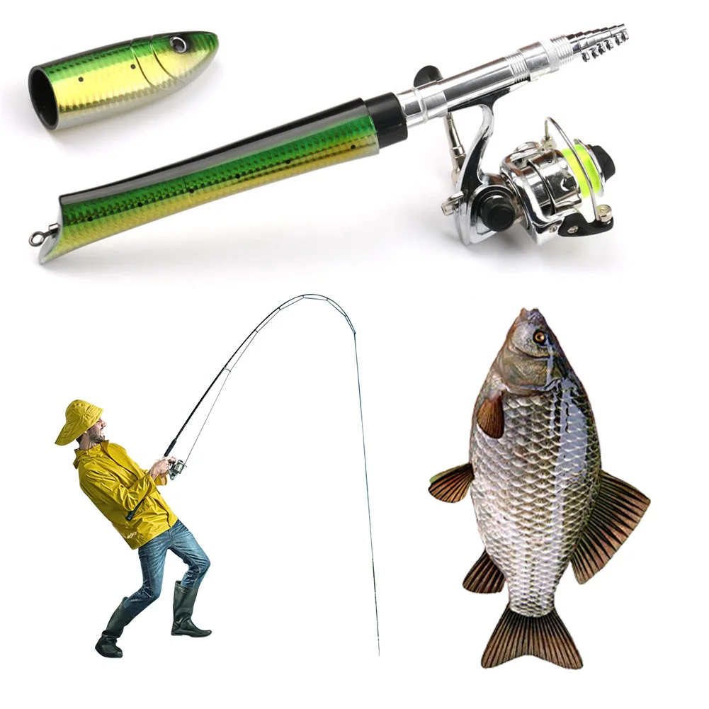 Portable Fish Shaped Fishing Rod with Reel Telescopic Mini Pocket Pen Fishing Pole with Reel Travel Fishing